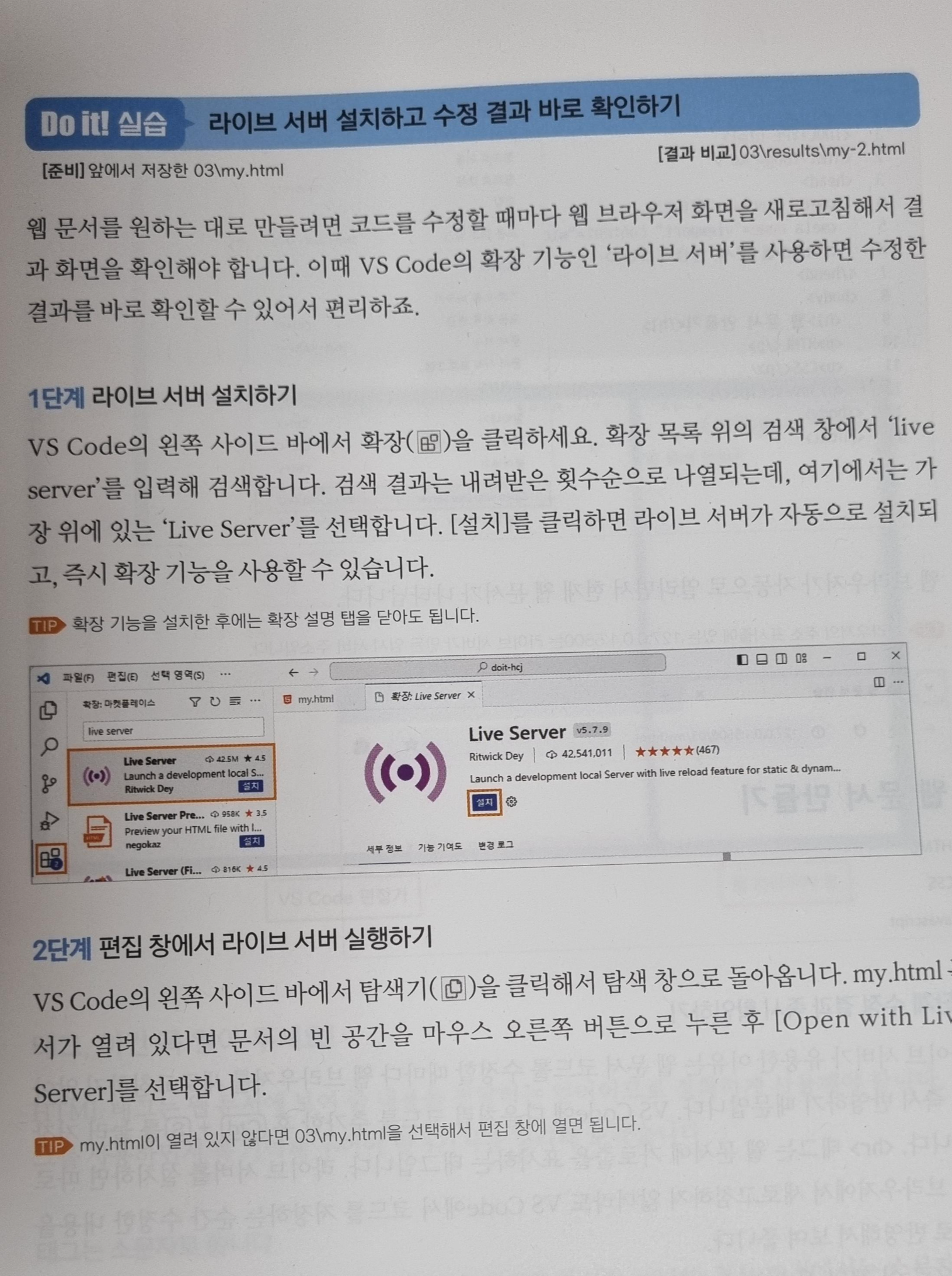 실습하는 파일의 경로가 적혀있어 실제 내가 작업한 파일들과 결과물의 파일들을 쉽게 비교할 수 있게 되어있다.